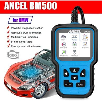 Ancel BM500 je profesionálny diagnostický skener špeciálne navrhnutý pre vozidlá BMW, MINI a Rolls-Royce. Toto kompaktné, ale výkonné zariadenie poskytuje komplexnú diagnostiku väčšiny elektronických systémov v modeloch vyrobených od roku 1996 doteraz, ktoré sú vybavené OBD2 konektorom. BM500 dokáže diagnostikovať nielen motor (ECM), ale aj ďalšie riadiace jednotky karosérie (BCM) a podvozku. Okrem toho funguje aj ako univerzálny nástroj OBD2/EOBD na detekciu porúch motora vozidiel iných značiek. Skener je vybavený 2,4" farebným TFT LCD displejom s vysokým rozlíšením, na ktorom sa prehľadne zobrazujú výsledky testov. Silikónová klávesnica umožňuje ľahký prístup ku všetkým ponukám a funkciám.