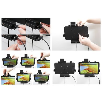 Držiak je veľmi pevný, tablet sa v ňom nelepí a nevibruje. Držiak sa pripevňuje na Brodit ProClip alebo na montážne základne a ramená Brodit.
