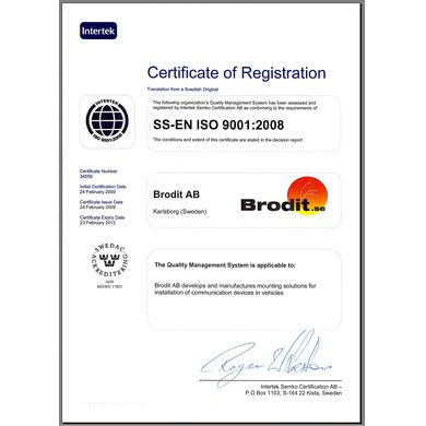 O výrobcovi Brodit: Brodit je švédska rodinná firma, ktorá sa už tri desiatky rokov špecializuje len na držiaky na mobilné telefóny, tablety, odolné terminály, rádiostanice, platobné terminály a ďalšie zariadenia do áut. Celá výroba je vo Švédsku.