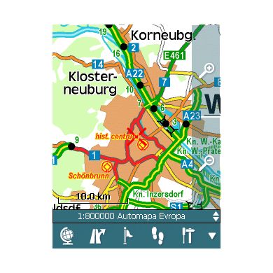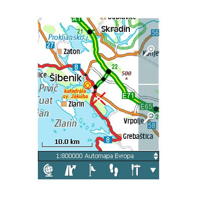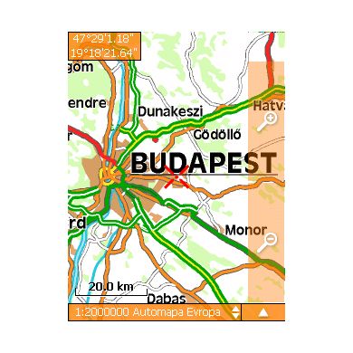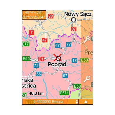 - Autozoom mapy – podľa rýchlosti, najpodrobnejší mapa