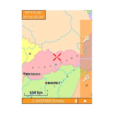 - Posun a centrovanie mapy podľa GPS signálu