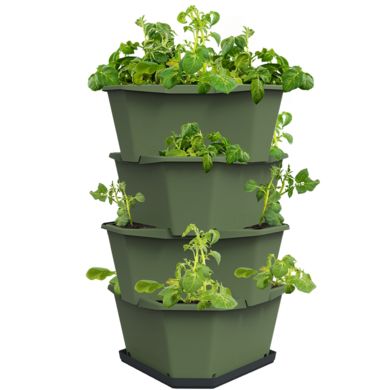 Či už žijete v meste alebo na vidieku, na pestovanie zemiakovvám stačí kompaktný balkón alebo terasa. Vrchnú vrstvu zemiakovej veže môžete dokonca použiť ako miniatúrny vyvýšený záhon. Okrem zemiakov je PAUL POTATOideálny ajna pestovanie šalátu, byliniek, reďkoviek a rôznych iných druhov zeleniny. Rovnako pohodlne sa však môžete zamerať aj na pestovanie ďalších zemiakov. Vďaka stohovateľným vrstvám vám pestovateľský záhon PAUL POTATO umožňuje na ploche 0,2 m² vypestovať rovnaké množstvo zemiakov ako na bežnom pozemnom záhone s rozlohou 2 m².