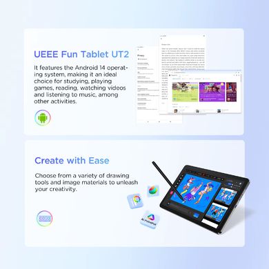 UGEE UT2 – 10,36" kresliaci tablet s 2K displejom, stylusom, Androidom 14, osemjadrovým procesorom a 6 GB RAM. Kompletné riešenie pre digitálne umenie, učenie a zábavu.