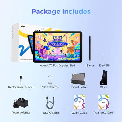 Okrem aplikácie PaintPal ponúka UGEE UT2 starostlivo vybranú kolekciu kresliacich aplikácií, ktoré sú predinštalované priamo v tablete. Či už ste začiatočník alebo skúsený profesionál, nájdete tu nástroje prispôsobené vašim potrebám a úrovni zručností. Vyskúšajte si rôzne štýly kreslenia, experimentujte s digitálnymi štetcami a objavujte nové techniky – to všetko bez nutnosti zdĺhavého hľadania a inštalácie ďalšieho softvéru. S UT2 môžete začať tvoriť hneď po vybalení z krabice. Tablet sa dodáva aj s puzdrom Smart Folio a súpravou príslušenstva, ktoré vám tvorbu ešte viac uľahčí. Puzdro Smart Folio chráni obrazovku pred poškriabaním pri prenášaní a zároveň poskytuje bezpečný úložný priestor pre stylus U-Pencil. Keď je čas na tvorbu, puzdro sa ľahko premení na praktický stojan, ktorý drží tablet v ideálnom uhle na kreslenie alebo prezeranie obsahu. Súčasťou balenia sú aj špeciálne rukavice, ktoré zabraňujú vzniku odtlačkov prstov na displeji a zlepšujú celkový komfort pri dlhšom kreslení. Či už ste študentom umeleckej školy, nadšeným amatérom alebo profesionálnym ilustrátorom, UGEE UT2 sa stane vaším verným spoločníkom na vašej tvorivej ceste. Spája špičkový hardvér, intuitívny softvér a premyslené funkcie do jedného kompaktného zariadenia, ktoré je radosť používať.