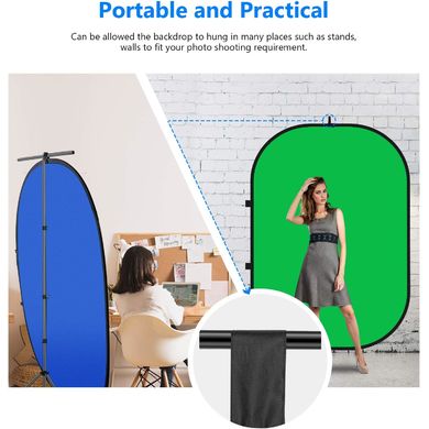 Obojstranné skladacie pozadie s úžasným dizajnom 2v1. Jasne modré na jednej strane a zelené na druhej strane. Rozlúčte sa s ťažkosťami pri nosení jedného modrého alebo zeleného pozadia. Doprajte si slobodu výberu farby, ktorú si vaša fotografia vyžaduje, kedykoľvek a kdekoľvek. Modré pozadie je vhodné na portrétnu a produktovú fotografiu, animáciu, spravodajské rozhovory, televízne a iné videozáznamy. Možno ho použiť aj ako pozadie pre portréty, výrobky, pasové fotografie atď. Zelená býva najčastejšie používanou farbou na chroma kľúčovanie, pretože je opakom našich prirodzených tónov pleti a farby vlasov. V tomto ohľade sa zelená farba zvykne uprednostňovať pred modrou, pretože dnešné videokamery sú najcitlivejšie na zelenú farbu a poskytujú najčistejší efekt kľúčovania. Pozadie je vyrobené z vysokokvalitného materiálu zo superpevného mušelínového vlákna s vynikajúcou odolnosťou, ktorý vám pomôžeznížiť odraz svetla a získať kvalitnejší obraz.