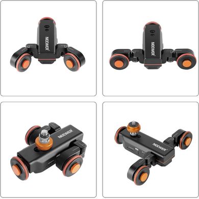 Neewer DL100 – AutoDolly, trojkolesový elektrický kamerový vozík, RC diaľkové ovládanie, 3 rýchlosti, maximálna nosnosť 3 kg