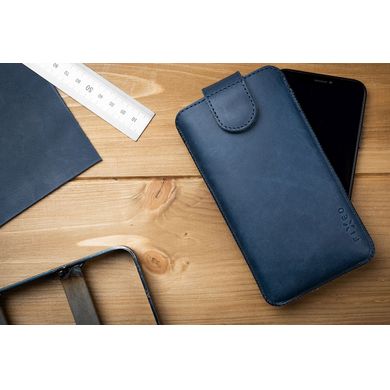 Kožené puzdro ručne vyrobené v Českej republike, výsuvný systém so zatváraním na magnet, modré