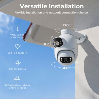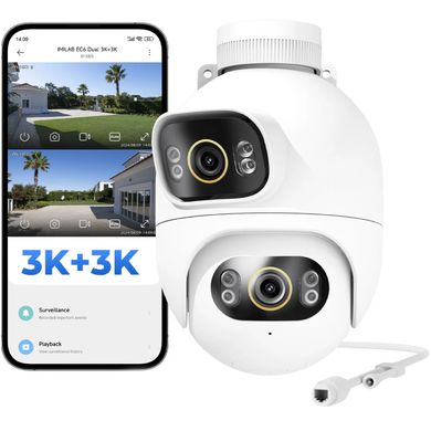 Kamera IMILAB EC6 Dual kombinuje dva objektívy s rozlíšením 3K v jednom tele. Horný objektív neustále monitoruje široký statický výhľad, zatiaľ čo spodný objektív možno otáčať až o 360° horizontálne a 90° vertikálne – manuálne prostredníctvom aplikácie alebo automaticky pri detekcii pohybu. Získate kompletný prehľad o vchode, dvore a vstupe do domu bez jediného mŕtveho bodu.