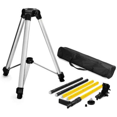 Odolný hliníkový statív s pevnými plastovými kĺbmi apogumovanými nožičkami poskytuje stabilnú základňu s nastaviteľnou výškou od 0,48 do 0,84 m. Zabudovanábublinková vodováha uľahčuje presné nastavenie askrutkovacia svorka zabezpečuje pevné upevnenie tyče bez posunu.
