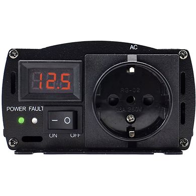 Menič z 12V na 230V, výstup 1× zásuvka 220V, napájanie z autobatérie, výkon 1000W, krátkodobo až 2000W, 1× ventilátor, čistá sínusoida, 1× LCD