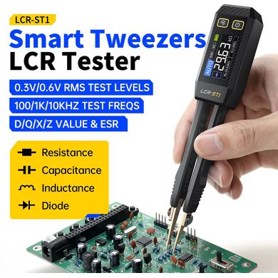 FNIRSI LCR-ST1 je inteligentná pinzeta na presné meranie SMD komponentov s podporou odporu, kapacity, indukčnosti, diód a 1,14" displejom.