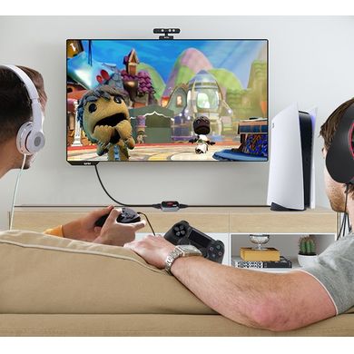 Na druhej strane rozdeľovača sa už nachádza jeden výstup HDMIpre videosignál s rozlíšením až 8K a dva výstupy