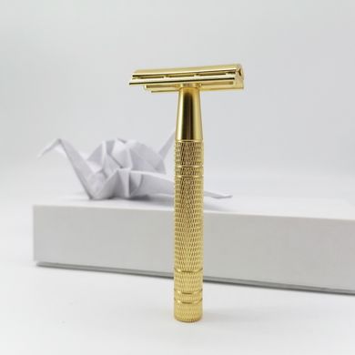 Klasická kovová britva so zosilnenou rukoväťou, zlatá farba