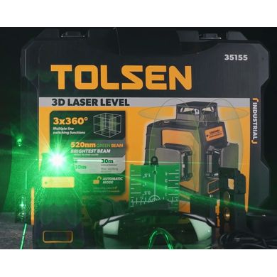 Rotačný laser Tolsen AKU 3×360° Cross-Line je pokročilá laserová